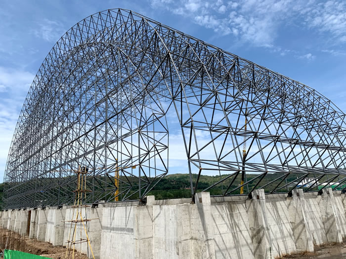 (2)网架加工前应对现场尺寸进行复测,确认无误后方可进行加工、安装;网架制作、运输、安装应遵守《空间网格结构技术规程》JGJ7-2010、《钢网架珲春螺栓球节点》JG/T 10-2009、《钢网架珲春螺栓球节点用高强度螺栓》 GB/T 16939-2016、《珲春钢结构珲春工程珲春施工规范》 GB50755-2012、《珲春钢结构珲春工程珲春施工质量验收标准》 GB50205-2020。